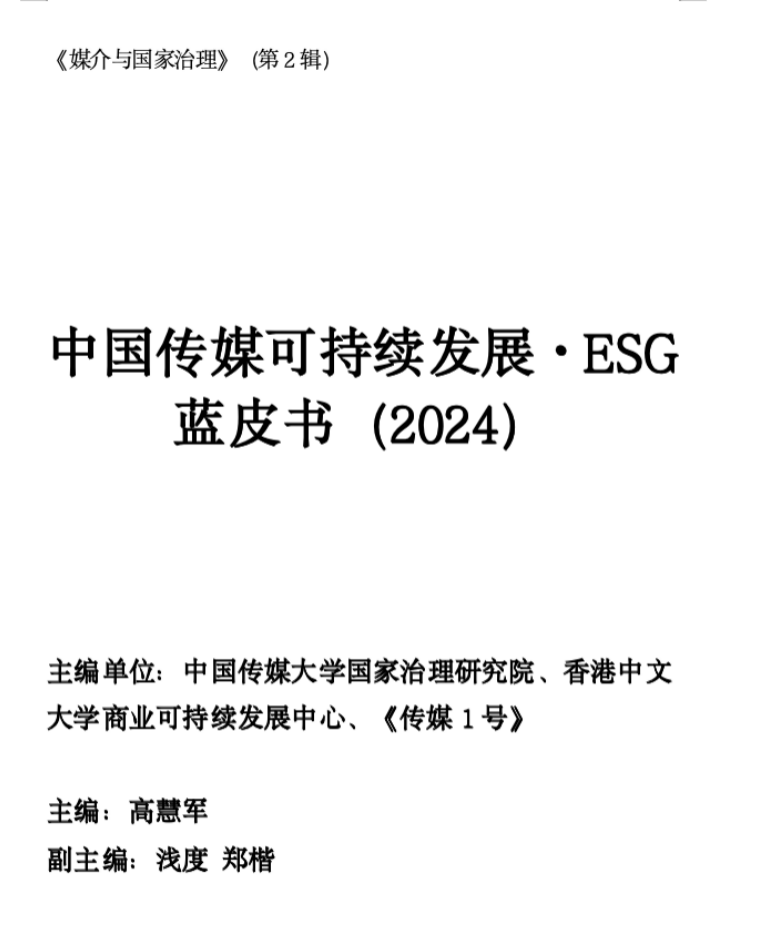 研究洞察 《中国传媒可持续发展·ESG蓝皮书》 是由中国传媒大学国家治理研究院、香港中文大学商业可持续发展中心与《传媒1号》联合推出的全国首部专注于传媒业可持续发展·ESG研究的蓝皮书。 在《中国传媒可持续发展·ESG蓝皮书(2024)》中,首次站在传媒业的视角下,系统溯源了全球背景下可持续发展·ESG观念的形成并与中国传媒业产生了合流,由此形成了「传媒可持续发展·ESG」的行业观念,并在这一观念之下,融入VPI模型形成了传媒公司与传媒作品的评级方法,由此方法评价中国传媒业在公司维度与作品维度的现状,并以六大传媒公司与十大传媒作品在可持续发展·ESG上的具体实践进行案例分析。 未来,《中国传媒可持续发展·ESG蓝皮书》系列将会依托每年「中国传媒可持续发展·ESG榜」发起的行业调研进行持续性的行业追踪,见证中国传媒业的可持续发展、ESG转型。